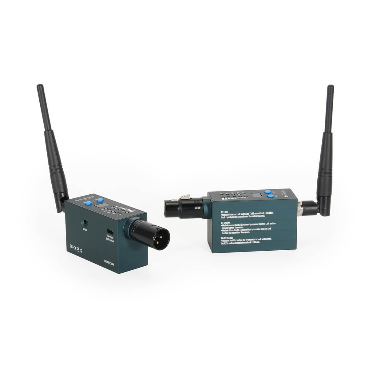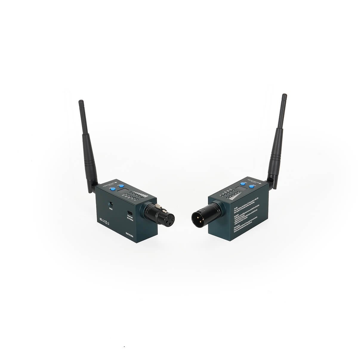 This is a truly wireless DMX solution — no signal cables, no power cables needed. With a built-in 5000mAh lithium battery, it delivers up to 15 hours of operation on a single charge.